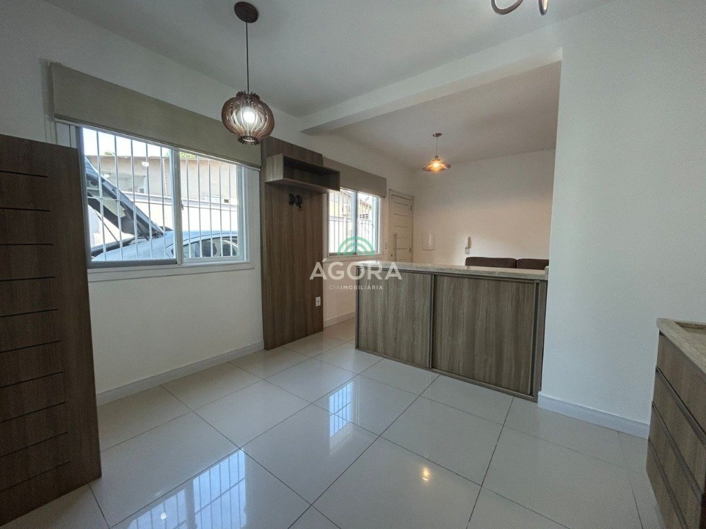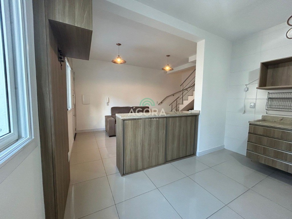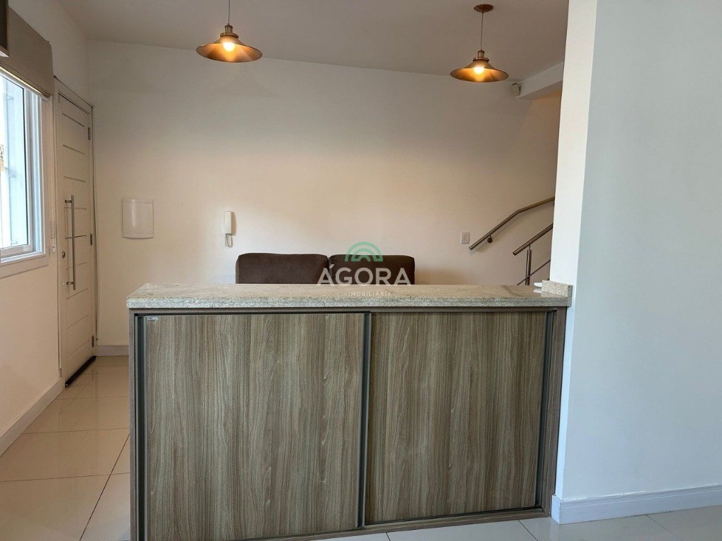 Belíssimo sobrado em condomínio fechado, medindo 107m² privativos, 2 (dois) dormitórios, 2 (dois) banheiros, sala estar e jantar integradas à cozinha com bancada em granito separando os ambientes. Escada em mármore travertino. Área de serviço, garagem para 2 (dois) carros. Semi mobiliado, ficam todos os móveis fixos. Churrasqueira, água quente nas torneiras e espera para splits. Condomínio com portão automático e cerca elétrica. Ótima localização no bairro niterói, próximo a todos os comércios do bairro e principais vias de acesso a cidade.
