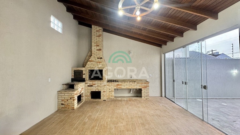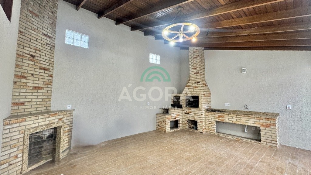 Casa térrea com 3 dormitórios e quiosque com churrasqueira.