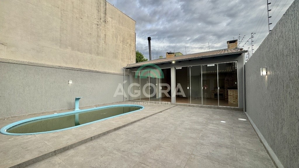 Sobrado totalmente reformado, medindo 100m² privativos, living integrado entre sala de estar, sala de jantar e cozinha, lavanderia separada e lavabo. 3 (três) dormitórios e 3 (três) vagas de garagem. Nos fundos o imóvel conta com amplo pátio com piscina e 1 (um) quiosque perfeito com churrasqueira, fogão campeiro e 1 (uma) aconchegante lareira.