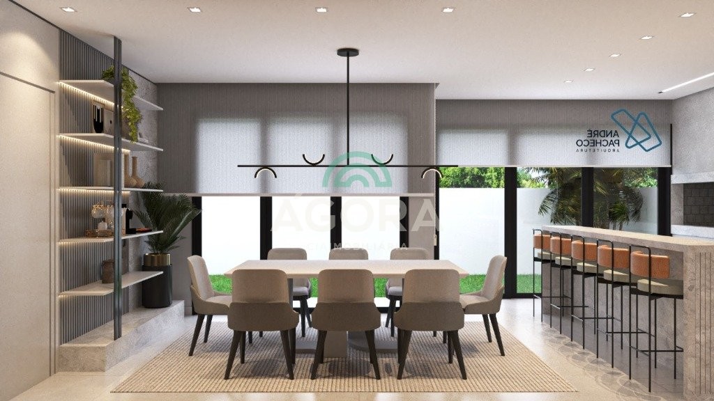 Sobrado com 3 (três) suítes, sendo a principal com banheira e sacada frontal. Este imóvel oferece conforto e privacidade para toda a família. Há ainda a opção de home office ou suíte estendida, adaptando-se facilmente ao seu estilo de vida. O térreo conta com sala de estar com lareira, cozinha e jantar integradas, proporcionando um ambiente acolhedor e fluido. Nos fundos, 1 (um) pequeno terraço integrado à sacada, churrasqueira e pátio privativo ideal para relaxar ou receber amigos. Possui lavanderia, depósito, 2 (duas) vagas de garagem cobertas e espera para carregador de carro elétrico. Acabamento impecável: revestimento em porcelanato, esperas para split em todos os ambientes, água quente e infraestrutura para energia solar. Um sobrado que une sofisticação, eficiência e conforto em cada detalhe. Sobrado moderno arquiteto **andré pacheco** e construído por **sérgio fidelis**,