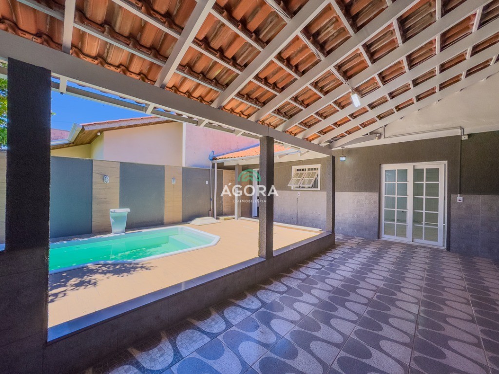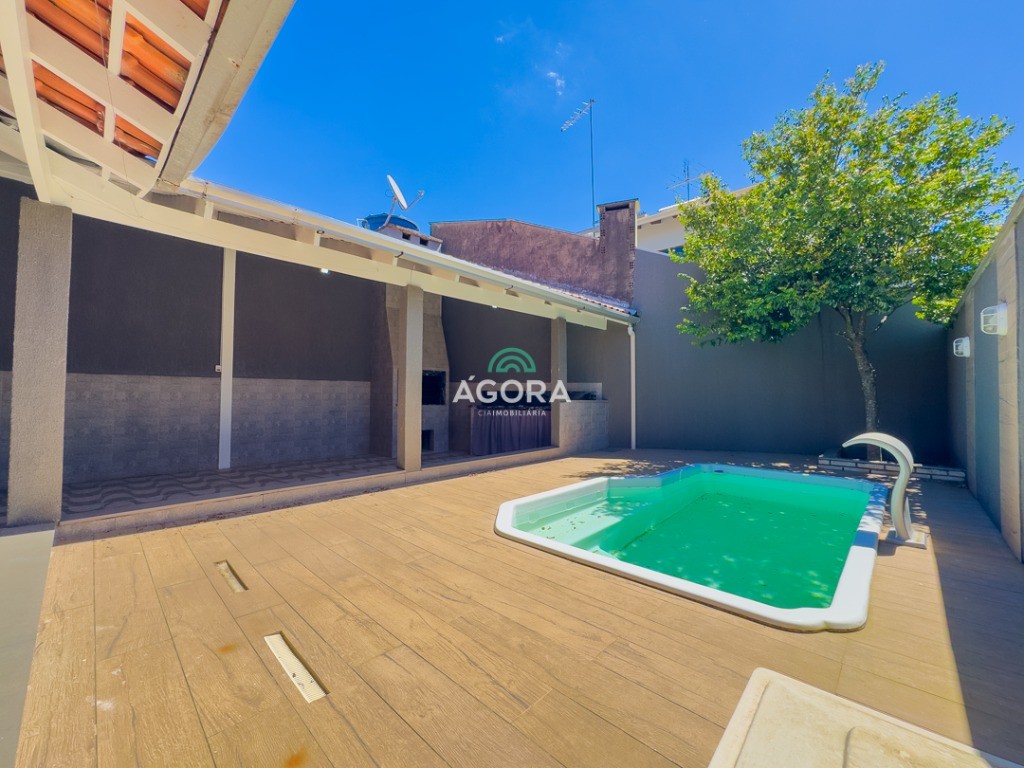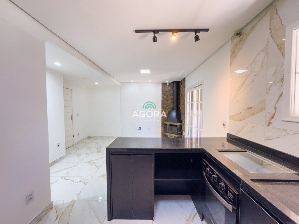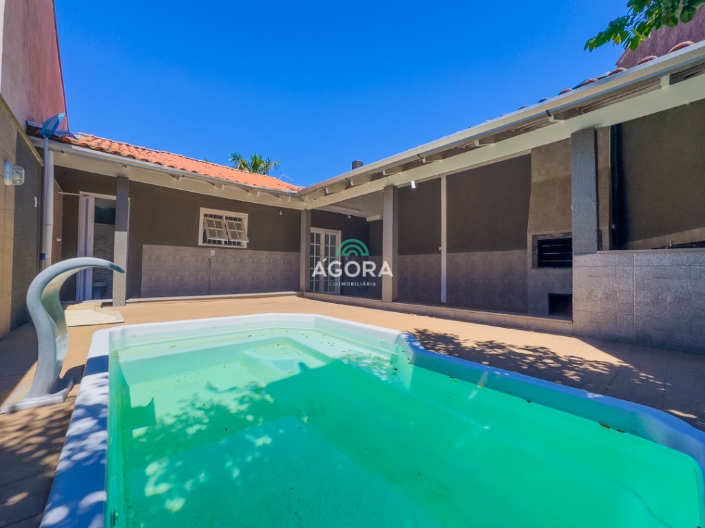 Casa térrea de 52m² de área privativa, com 2 (dois) dormitórios, sala living estendido, cozinha, lareira, churrasqueira, pátio com piscina e vaga para 2 (dois) carros. Ficando semimobiliado, dormitório, cozinha, armários e forno elétrico.