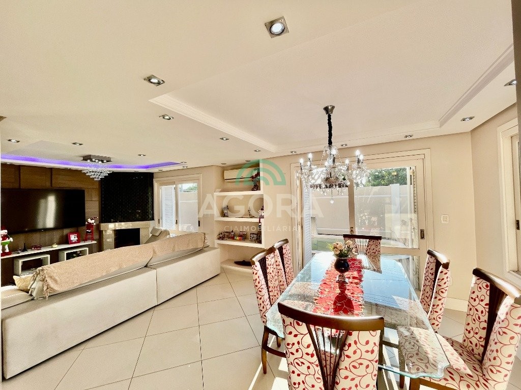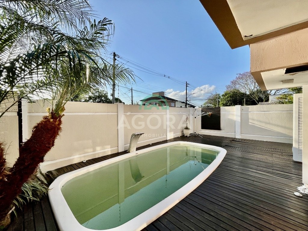 Excelente sobrado semimobiliado de 195m² privativos. Com 3 (três) dormitórios, sendo 1 (uma) suíte com closet e banheira de hidromassagem. Living integrado entre sala de estar com lareira, sala de jantar e cozinha em ilha, banheiro social, lavabo e área de serviço independente. Pátio privativo com piscina. Garagem para 4 (quatro) veículos, sendo 2 (duas) vagas cobertas. Permanece no imóvel todos os móveis planejados e aparelhos de ar condicionado. Localizado no bairro niterói próximo a mercados, farmácias, região de fácil acesso para br 116.