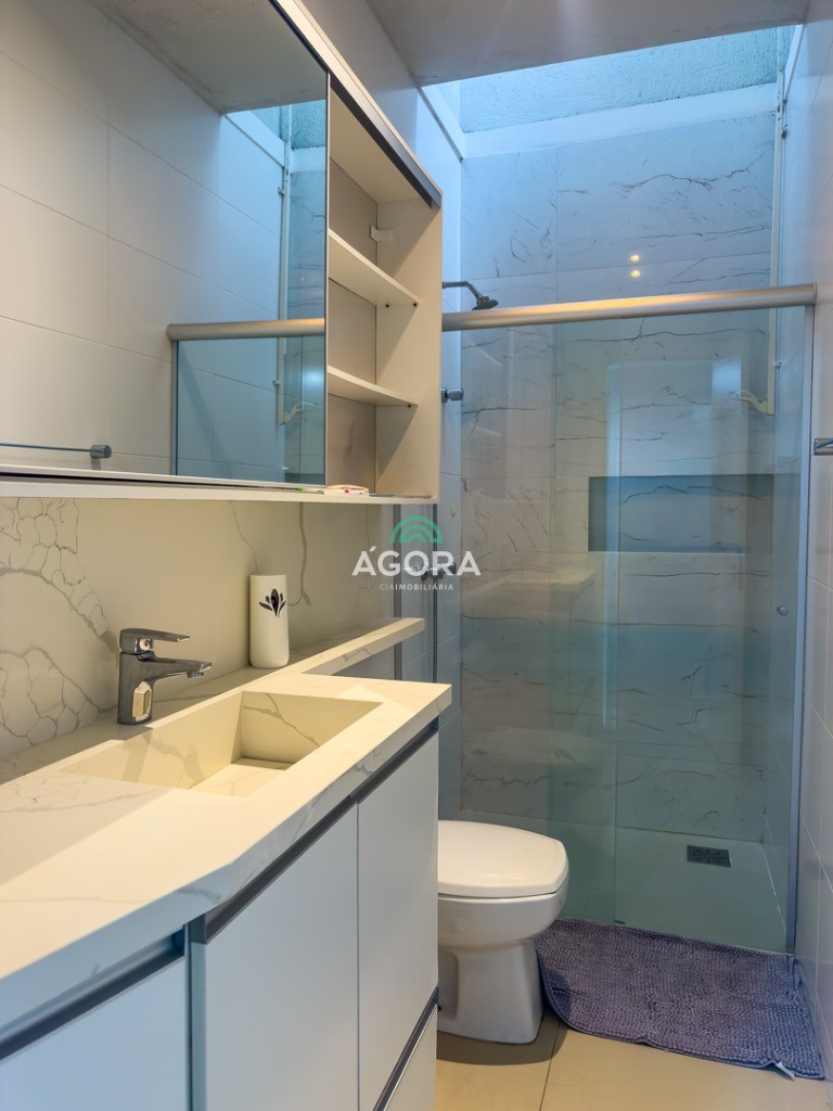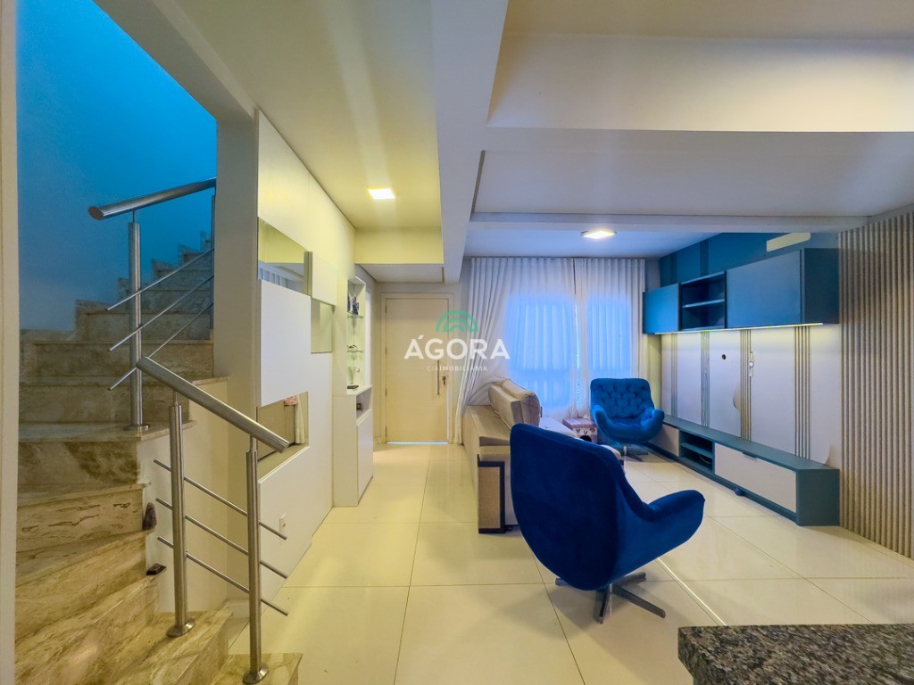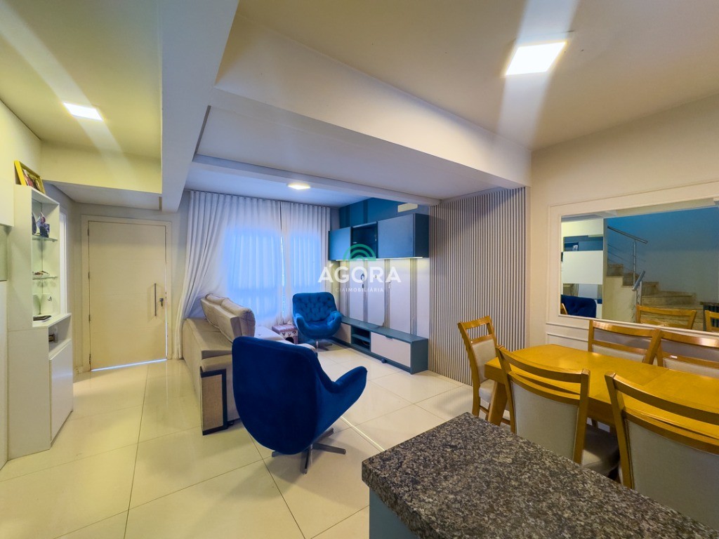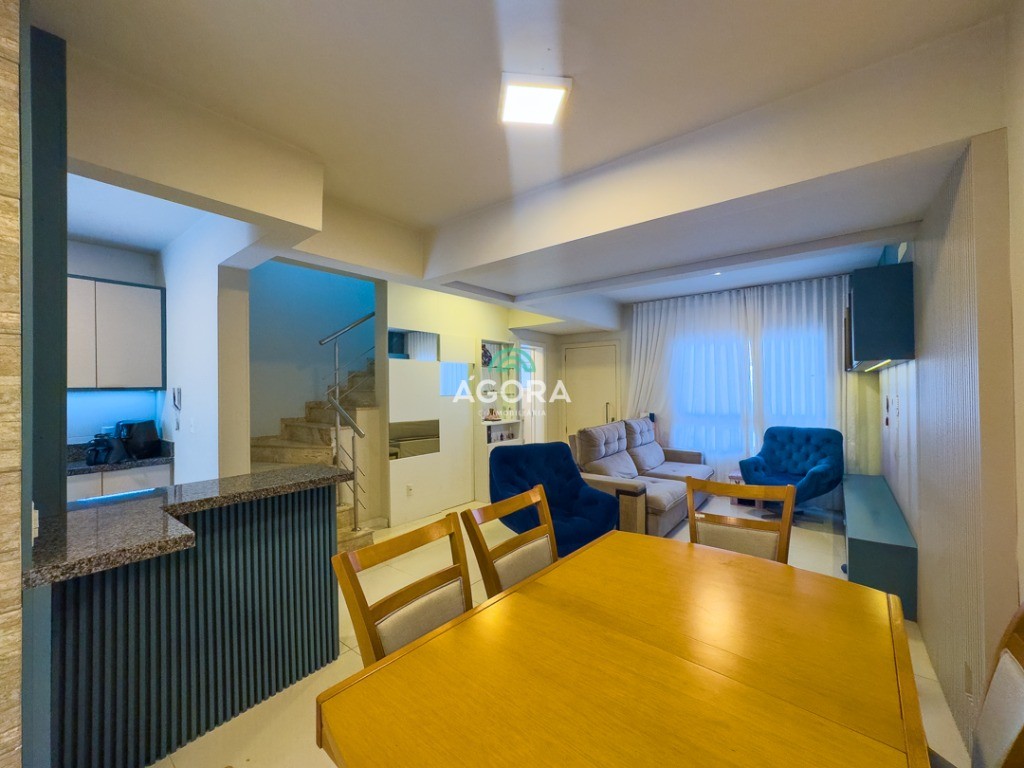Sobrado em condomínio fechado, sendo 113m² de área privativa, com 3 (três) dormitórios, sendo 1 (suíte), sala de estar, cozinha, lavabo, banheiro social, área de serviço e pátio nos fundos, escritório e vagas para 2 (dois) carros. Fica mobiliado. Com design moderno, o imóvel oferece um acabamento de qualidade com rebaixo em gesso e piso porcelanato. Imóvel fica mobiliado. Aceita financiamento e fgts.