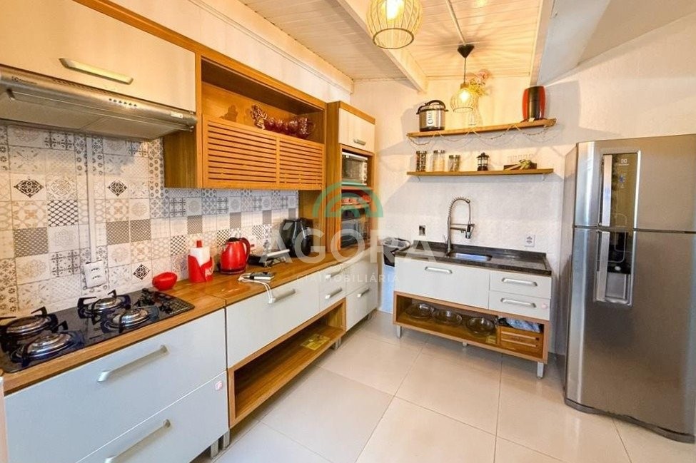 Casa térrea em condomínio fechado, de 95m² de área total e 81m² privativos. Sala ampla com ar condicionado, 3 (três) dormitórios, sendo em embaixo 1 (uma) com suíte e closet e 1 (um) na parte de cima com closet modulado. 2 (dois) banheiros, cozinha com armários modulados e geladeira com dispensar de água. Spots de led embutidos, área de serviço com churrasqueira e pia em granito e 2 (duas) vagas de garagem, sendo 1 (uma) coberta. Portaria presencial 24h e sistema de segurança, espaço gourmet com churrasqueira, quadra poliesportiva e playground e salão de festas. Próximo a escolas, mercados, farmácias e transporte público, com fácil acesso à br116 e br386, 15min do centro de canoas, 7min do aeroporto de porto alegre e 15min do park shopping canoas. Casa 100% reformada, pronta para morar! Podemos negociar os móveis!
