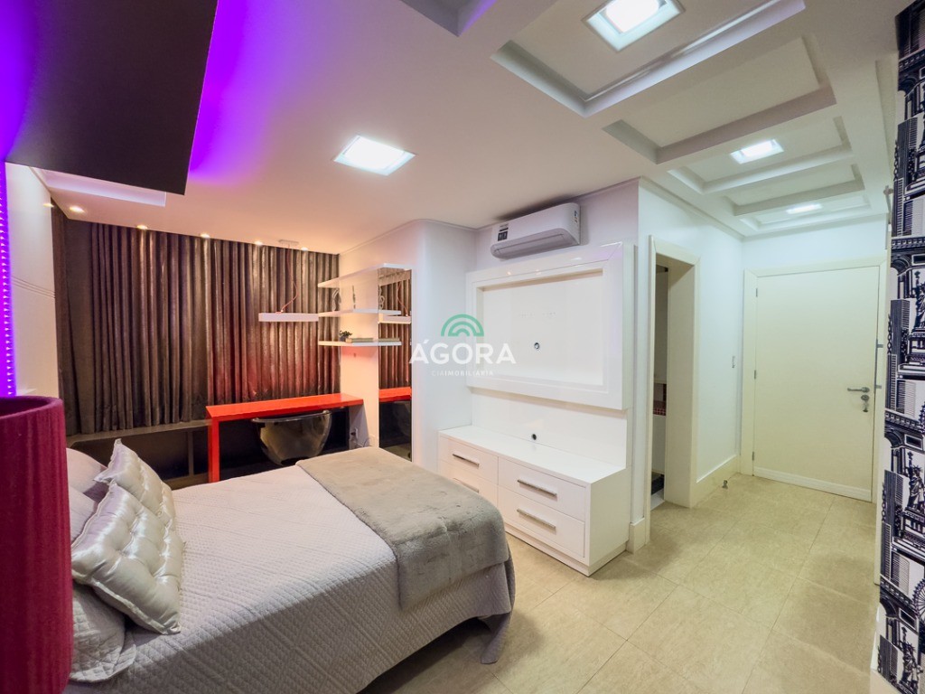 Um imóvel completo e sofisticado, contando com 3 (três) suítes, todas com closet e banheira, além de 1 (um) quarto de hóspedes e 1 (uma) dependência de empregada. No térreo, o imóvel também oferece 1 (um) escritório e 1 (um) banheiro social. A área social é ampla e integrada, com 2 (duas) salas, cozinha em ilha, espaço gourmet completo com chopeira, adega e 1 (um) aconchegante pátio aos fundos com jacuzzi. O imóvel ainda dispõe de 2 (duas) lareiras, espaço de lavanderia e elevador, garantindo conforto e praticidade em todos os ambientes. Localizado em condomínio com infraestrutura, próximo a todo o comércio local e com fácil acesso às principais vias da cidade.