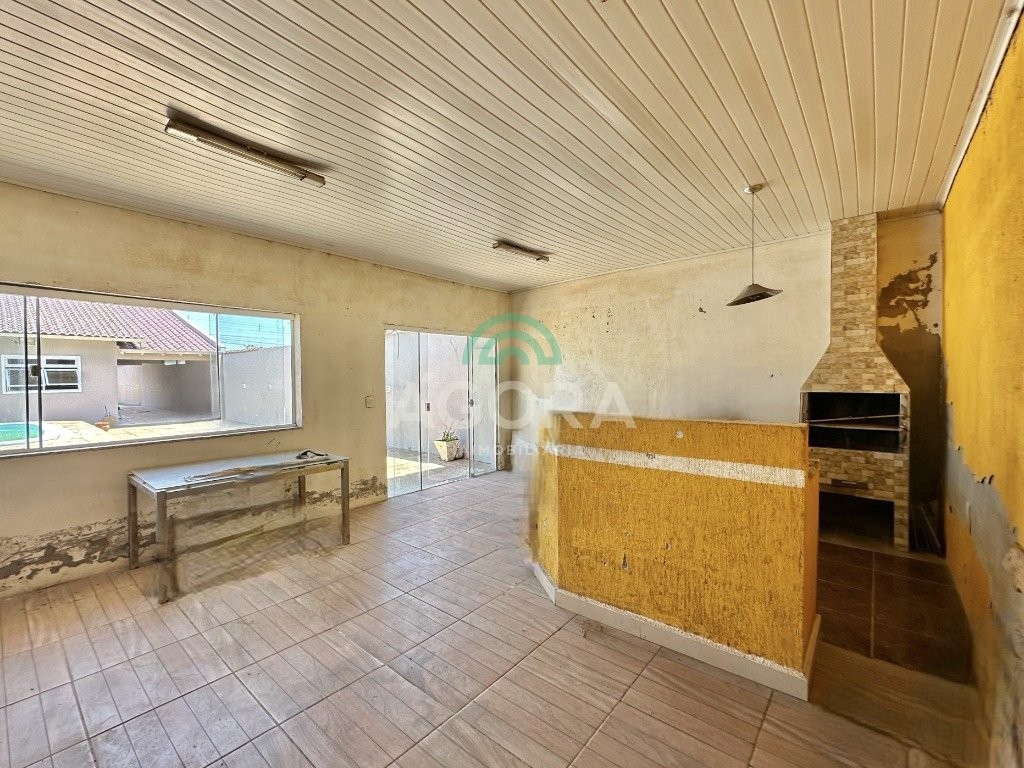 Casa térrea de 100m² privativos, com 2 (dois) dormitórios, sendo 1 (uma) suíte, sala de estar, janta e cozinha, 1 (um) banheiro social, rebaixamento em gesso e piso porcelanato. Edícula de 60m² com churrasqueira, área de serviço e banheiro social, além de 1 (um) amplo pátio com piscina e vaga para 5 (cinco) carros ou mais, sendo 3 (três) cobertos.