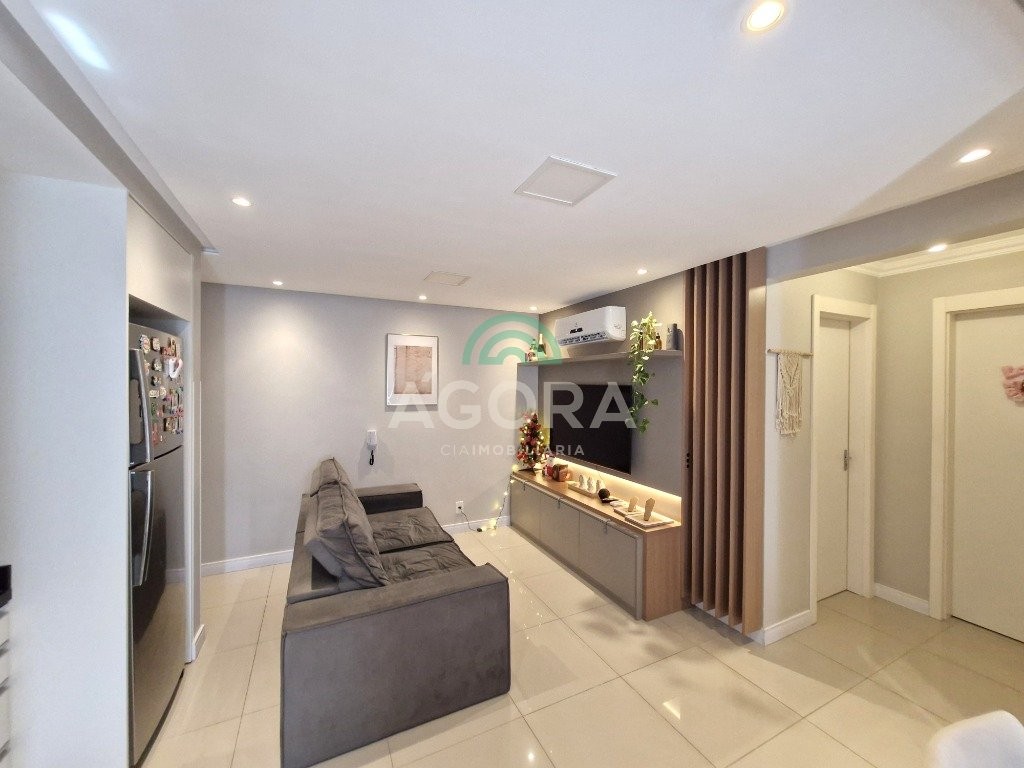 Apartamento com 2 (dois) dormitórios, rebaixo de gesso com led, sala e cozinha integrador, banheiro social, 1 (uma) vaga descoberta, piso sala e cozinha porcelanato, dormitórios piso laminado e com posição oeste. Ficam móveis planejados. O condomínio conta com 2 (dois) salões de festa, quadra de esportes e pracinha.