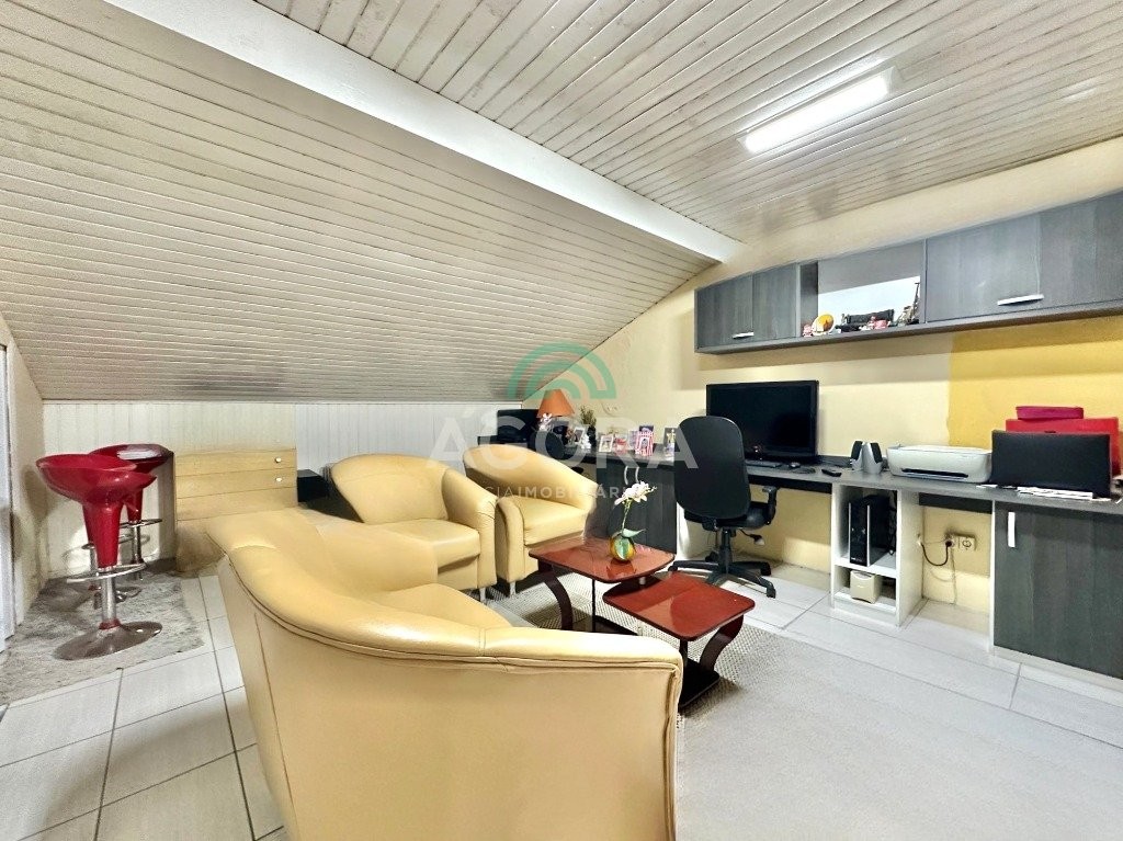 Agora cia imobiliaria vende: sobrado em bairro nobre de canoas. Com 131m privativos, de 3 (três) dormitórios sendo (uma) suite, sala de estar, jantar, cozinha, banheiro social, lavabo, lavanderia, sótão que pode ser transformado em um quarto dormitório ou escritório, quiosque gourmet com churrasqueira e fogão campeiro ,alem de amplo pátio nos fundos e 03 (três)vagas de garagem.