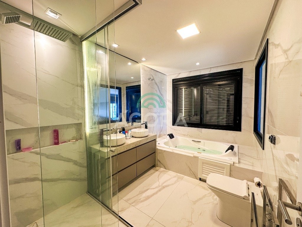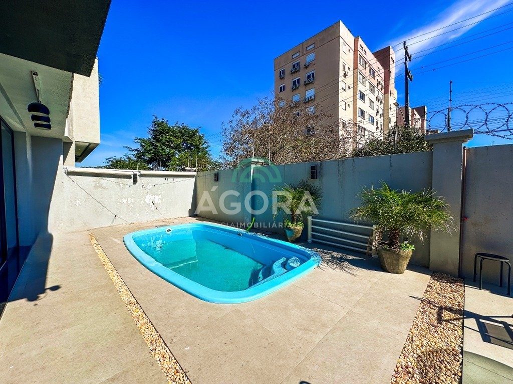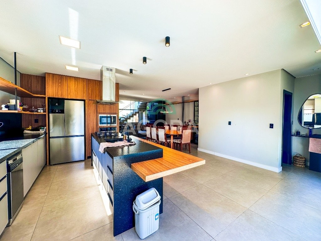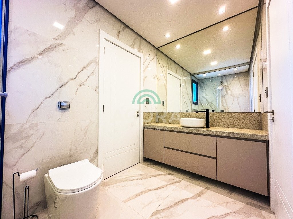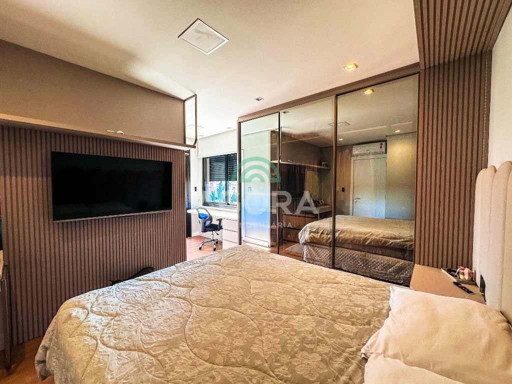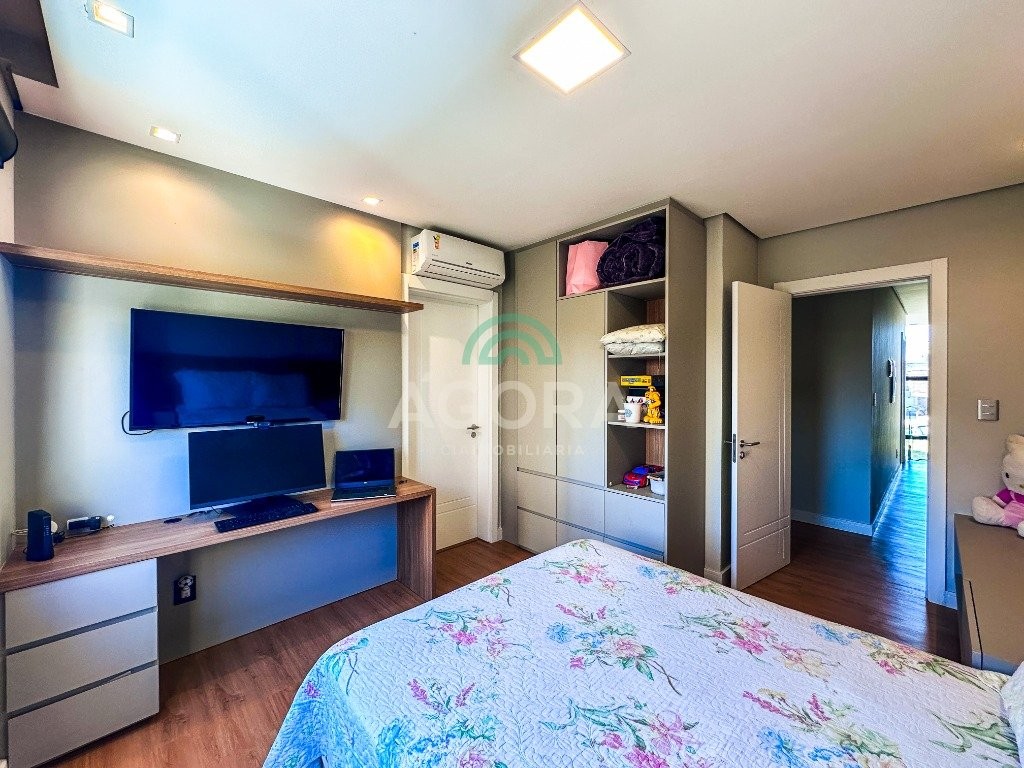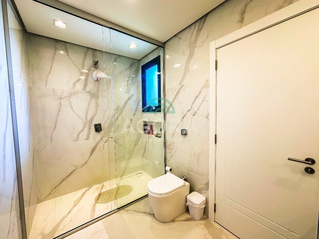 Sobrado mobiliado de alto padrão, 3 (três) dormitórios, sendo 1 (uma) suíte com sacada, closet e hidromassagem, 2 (dois) dormitórios com banheiro compartilhado, semimobiliado, com piscina aquecida, energia solar e área externa privativa. Ambientes integrados e acabamentos de qualidade, incluindo escada com guarda corpo em vidro e lareira a gás. No térreo, conta com ampla sala, cozinha planejada, churrasqueira, banheiro social, área de serviço e escritório. Diferenciais: sobrado inteligente, água aquecida em toda a residência, forro rebaixado, 3 (três) câmeras de segurança, e garagem para até 4 (quatro) veículos.