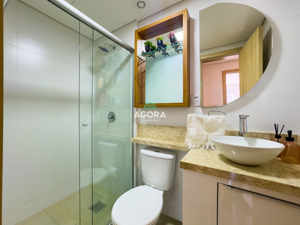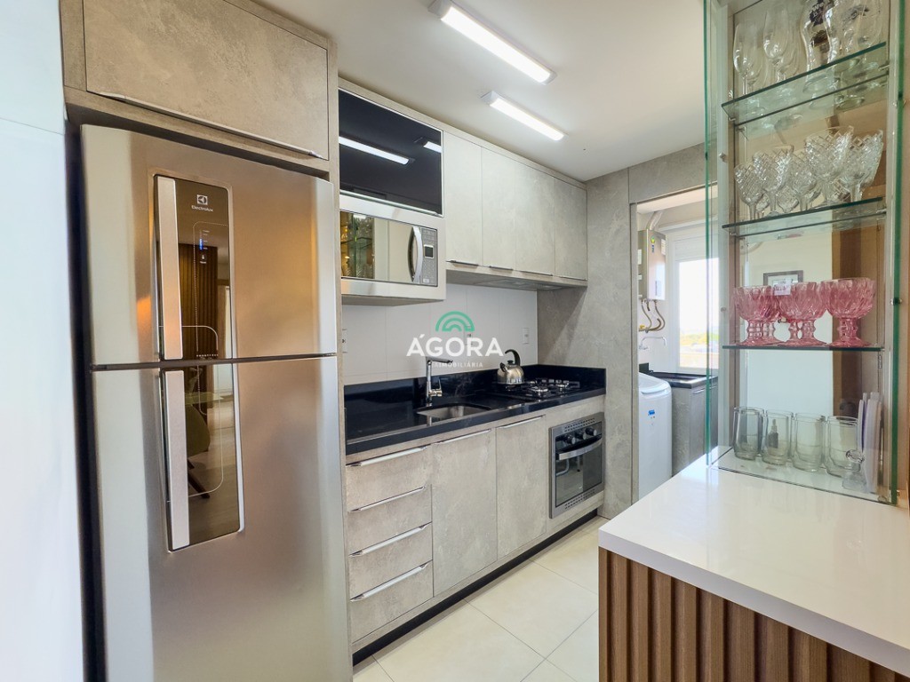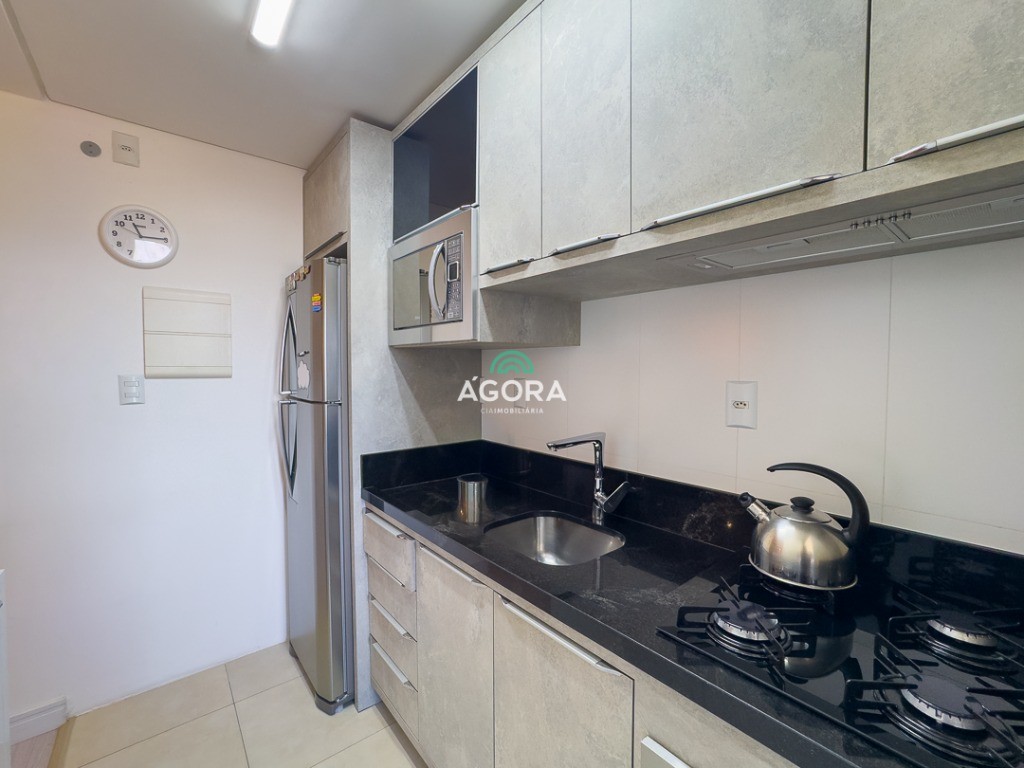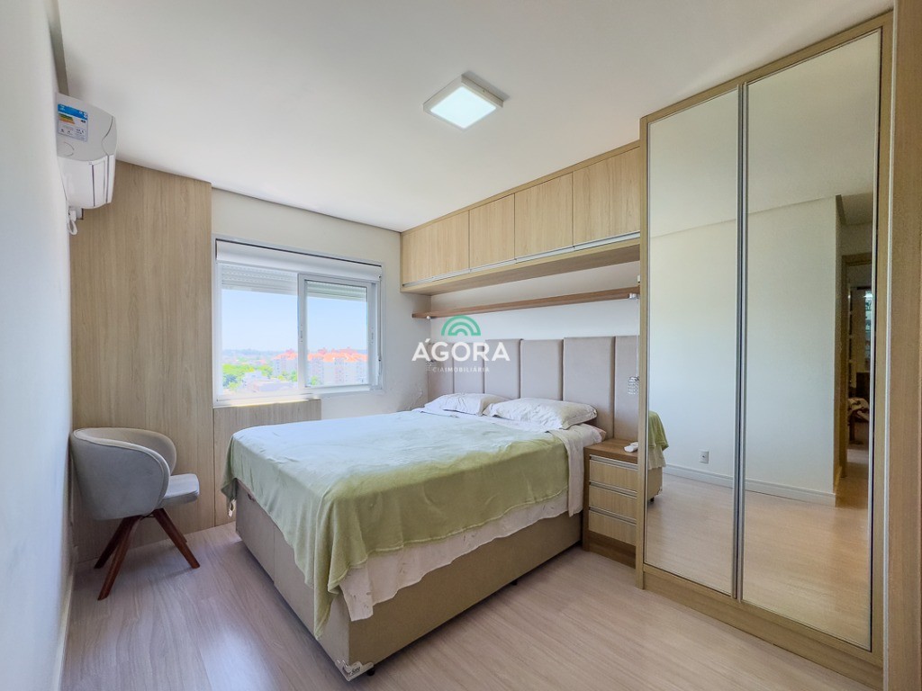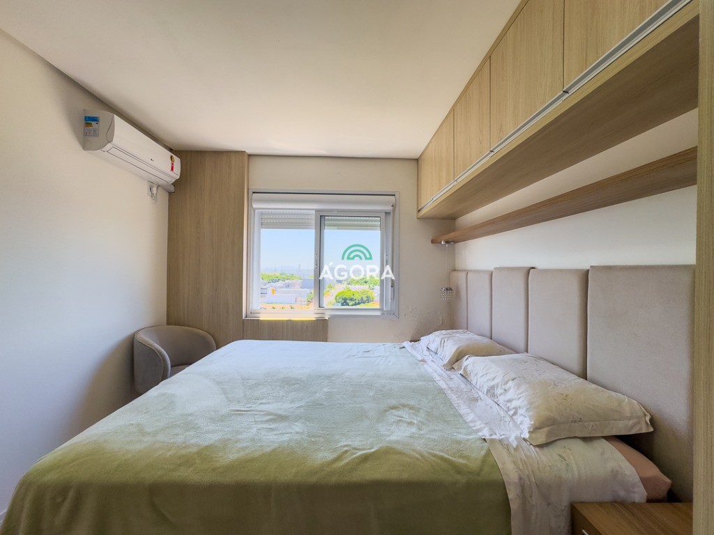 Apartamento mobiliado com uma excelente vista, localizado no bairro igara. Possui 2 (dois) dormitórios, sendo 1 (uma) suíte, sacada com churrasqueira, cozinha americana, água quente nas torneiras e chuveiro e vaga para 1 (um) carro. O condomínio oferece uma infraestrutura completa: piscina adulto e infantil, academia, quadra poliesportiva, playground, salão de festas, espaço gourmet, cinema e portaria 24 horas. Excelente localização, próximo ao park shopping canoas, praças, marcados, restaurantes e escolas.