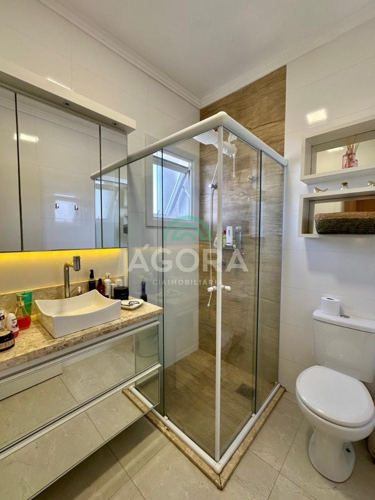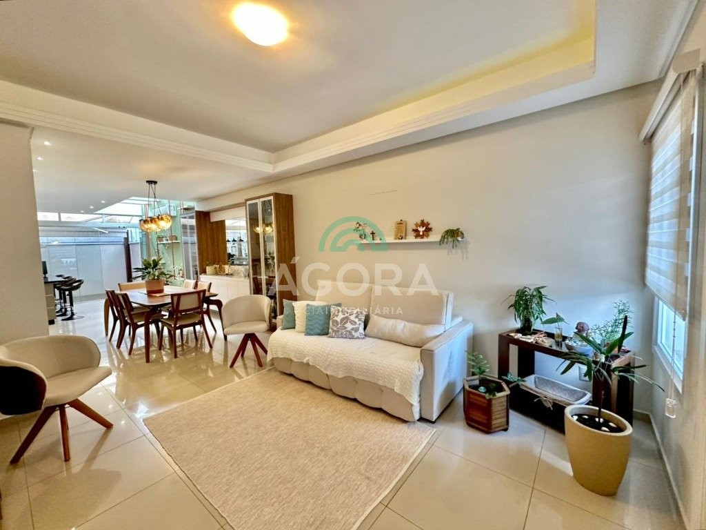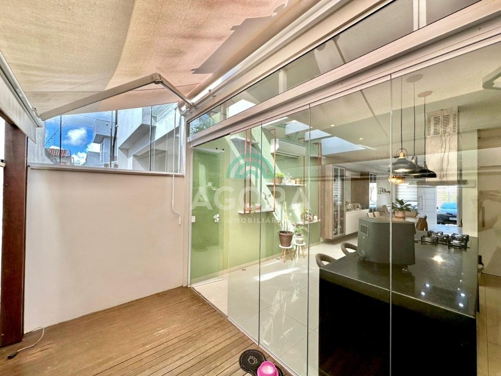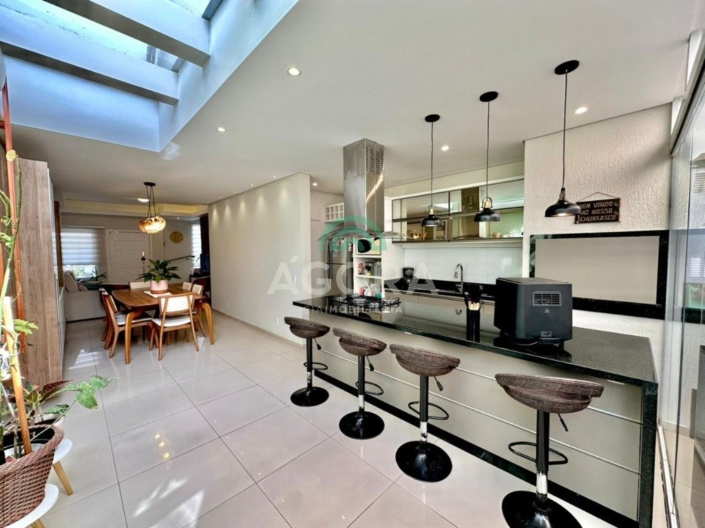 Ágora cia imobiliária vende: sobrado mobiliado com 120m² privativos, de 3 (três) dormitórios, sendo 1(um) suíte com sacada e closet, living integrado entre sala de estar, sala de jantar e cozinha com espaço gourmet completo com churrasqueira e ilha, pequeno pátio aos fundos de deck, banheiro social, lavabo, área de serviço, despensa e garagem para 2(dois) veículos lado a lado. Imóvel possui aquecedor de água a gás, com saídas de agua quente nas principais torneiras, permanece mobiliado, com cortinas, lustres, móveis soltos e 4 aparelhos de ar condicionado. Localizado no bairro igara, próximo ao park shopping canoas, e principais vias de acesso.
