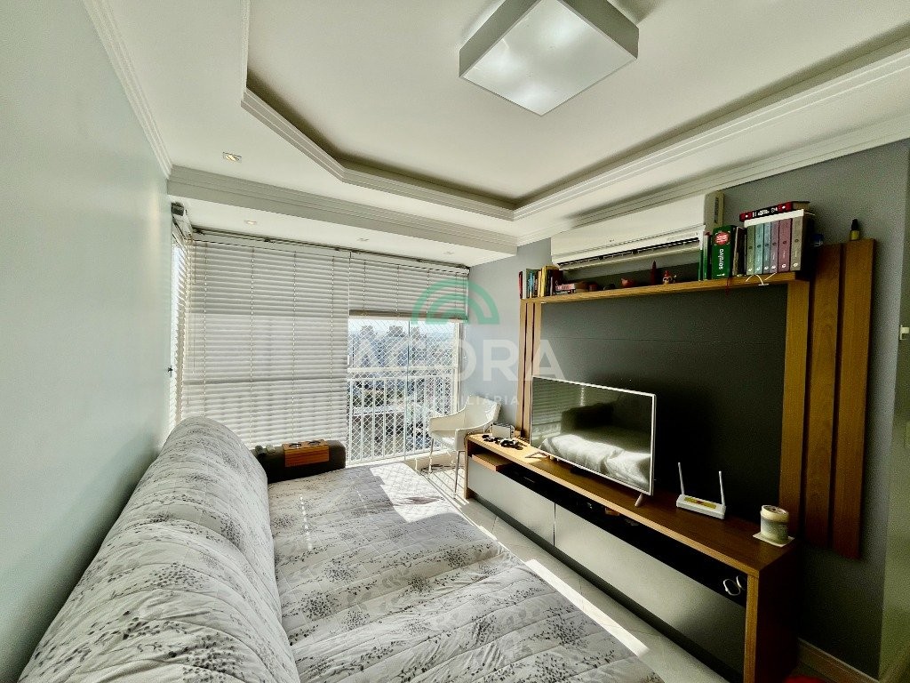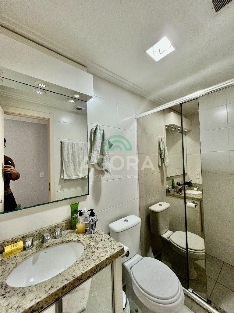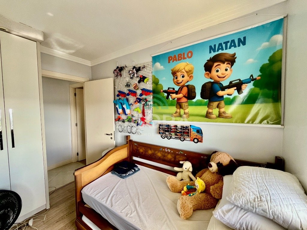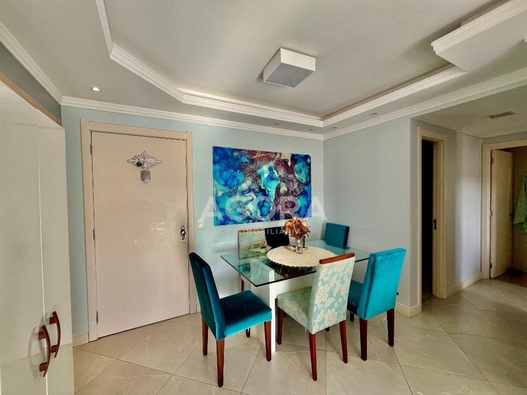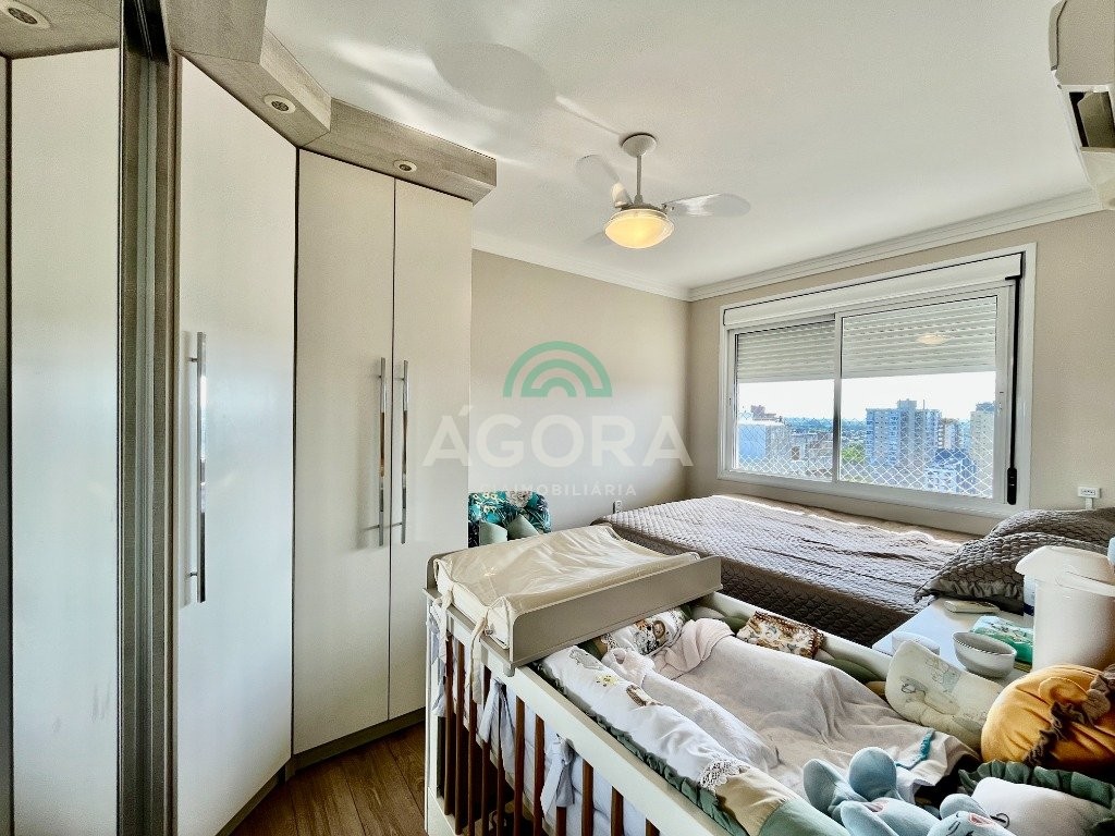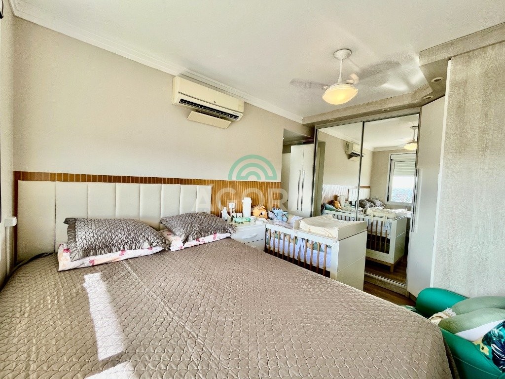 possui 2 (duas) vagas de garagem cobertas. Permanece no imóvel todos os móveis fixos, fogão, depurador, aparelhos de ar condicionado, mesa com cadeiras, sofá e banheiros completos, é retirado somente camas, tvs, geladeira e maquina de lavar. Condomínio com das infraestruturas mais completas de canoas, com piscina, sala de jogos, academia, quadra com grama artificial área verde pista de caminhada e portaria 24h com acesso controlado, tudo isso dentro do condomínio. Localizado no centro da cidade, próximo a comércios, universidades e ao canoas shopping.