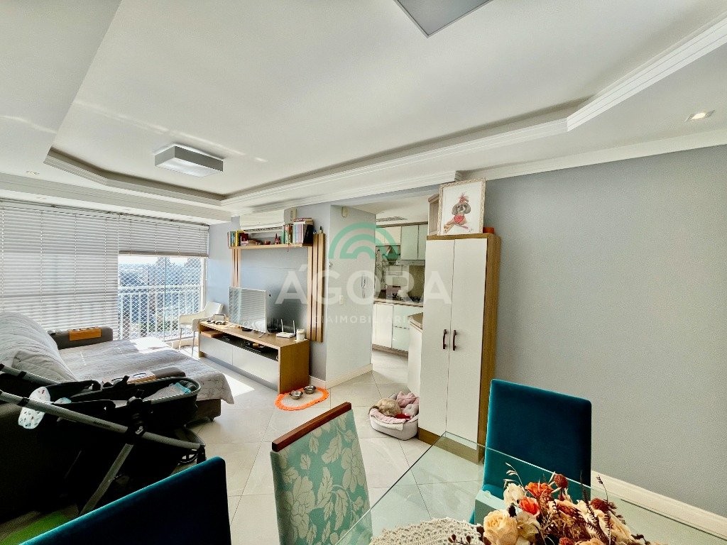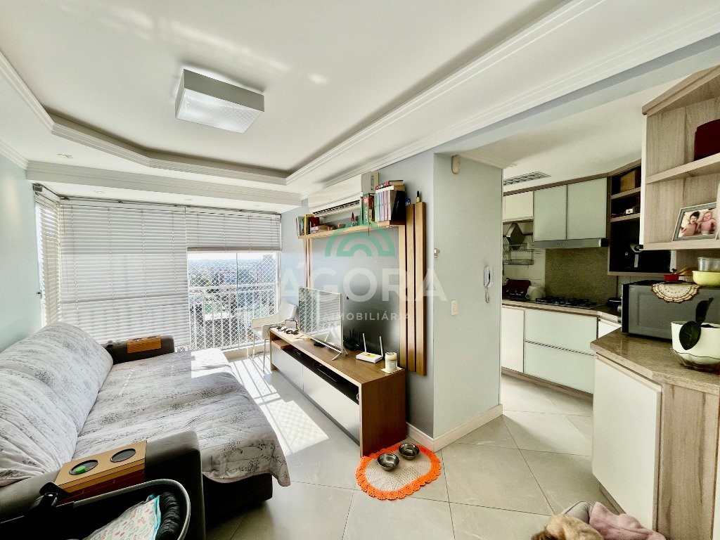 Apartamento mobiliado de 68,57 m² privativos, 2 (dois) dormitórios, sendo 1(um) suíte, living 2 ambientes sala de jantar e sala de estar com sacada integrada, cozinha montada com churrasqueira, banheiro social e lavanderia separada,