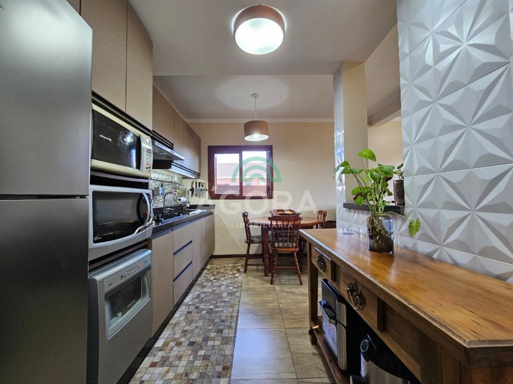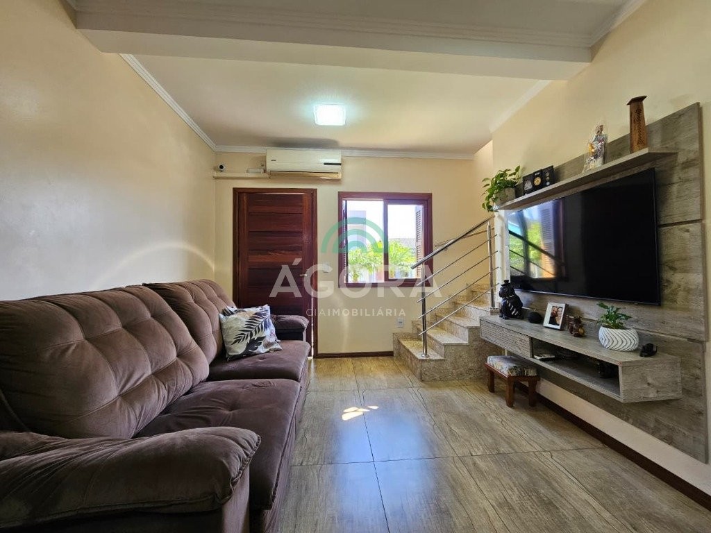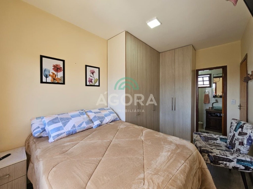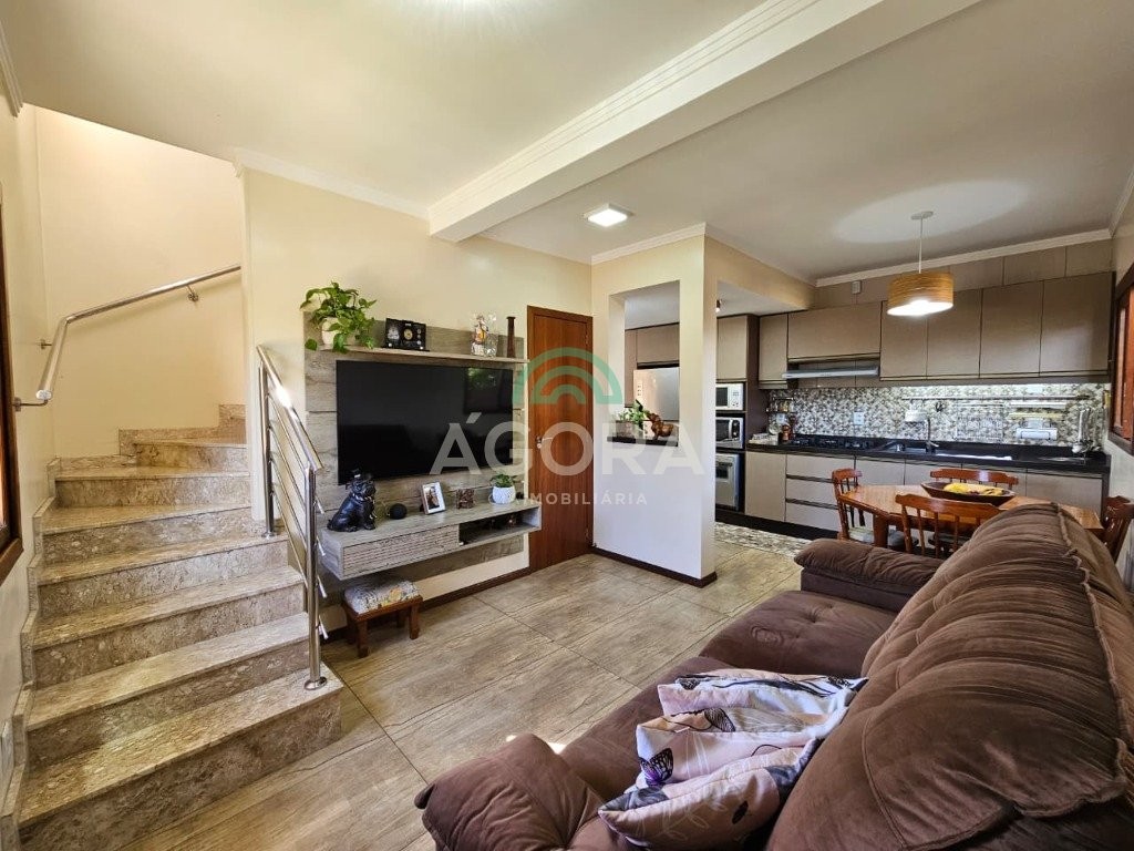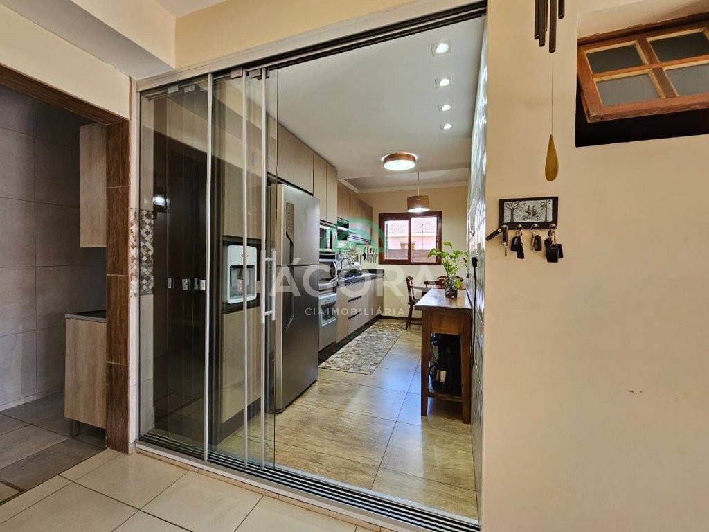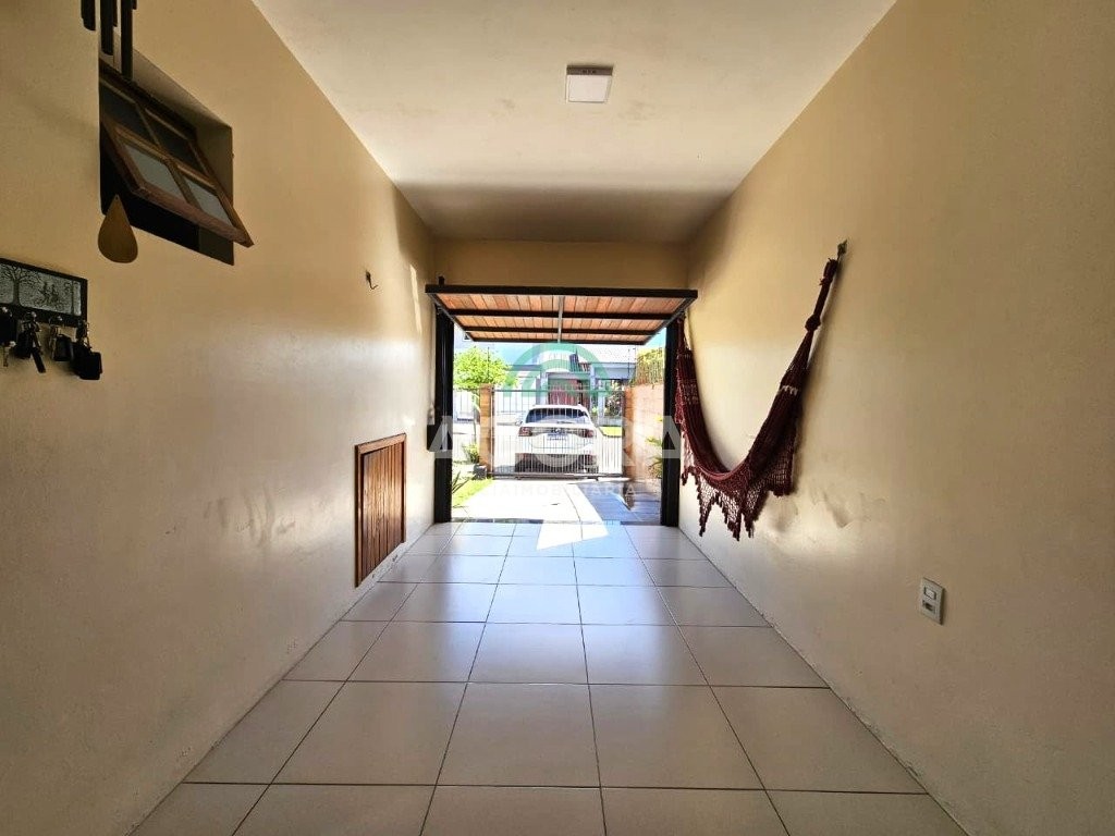Sobrado de esquina, medindo 90,92m², com 3 (três) dormitórios, sendo 1 (uma) suíte, sala de estar/jantar, cozinha planejada, lavabo, banheiro social, garagem coberta para 2 (dois) automóveis, água quente em todas as torneiras, piso em porcelanato, rebaixo em gesso, cerca elétrica, churrasqueira e fogão campeiro. Próximo a escolas, mercados, transporte público, etc. Aceita financiamento e fgts.