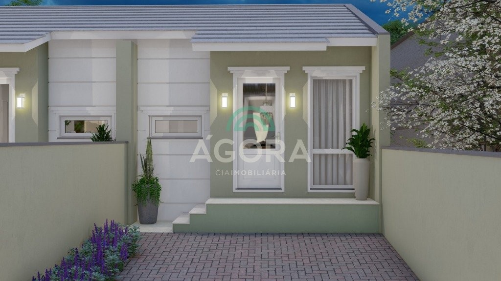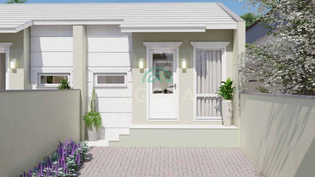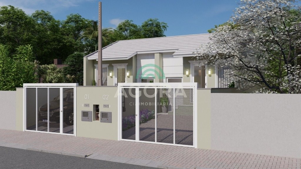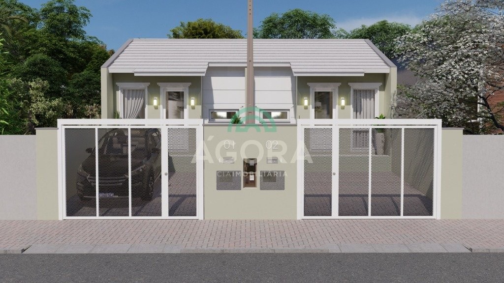 Excelente casa térrea de 58m² privativos, com 2 (dois) dormitórios, sala de estar e jantar integradas com a cozinha, banheiro social, lavanderia, espaço aos fundos e 2 (duas) vagas de garagem lado a lado. Imóvel tem laje.