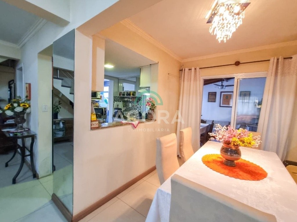 Ágora cia. Imobiliária vende: lindo sobrado em condomínio fechado, 3 dormitórios, sendo 1 suíte, lavabo, banheiro social, living 2 ambientes, pátio individual, vaga para 2 carros.