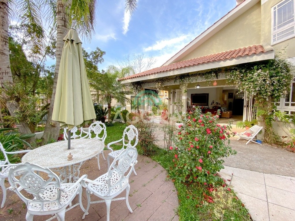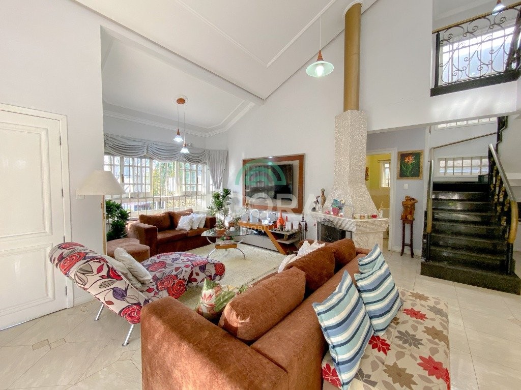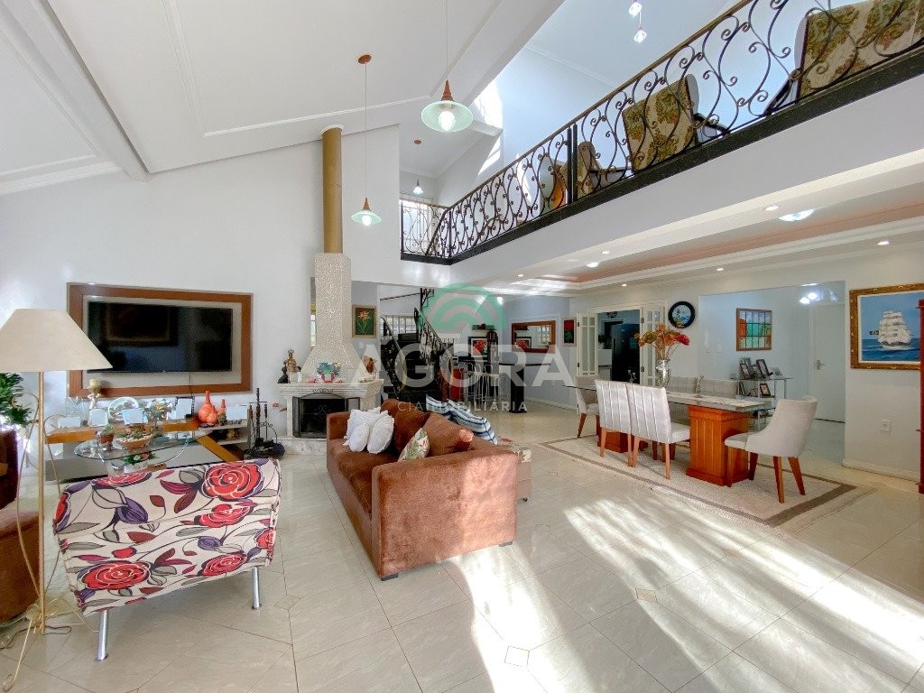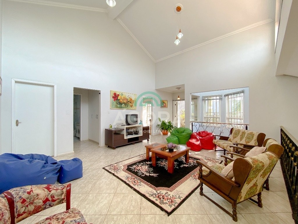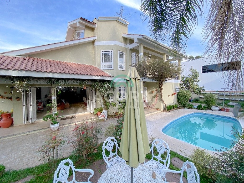piso inferior com 2(duas) suítes sendo 1(uma) master, jardim de inverno, escritório, lavabo, salas de jantar com churrasqueira, sala de estar com lareira, sanca em gesso, piso porcelanato, depósito embaixo da escada, cozinha mobiliada e fogão à lenha, área de serviço, garagem coberta para 4(quatro) veículos mais 4(quatro) veículos descobertos, escada em granito, aberturas em madeira itaúba. Piso superior com mezanino e sacada, 1(uma) suíte com sacada, 2(dois) dormitórios, banho social, piso frio. Amplo pátio com piscina, jardim arborizado, poço artesiano 70 m de profundidade, cerca elétrica, portão eletrônico