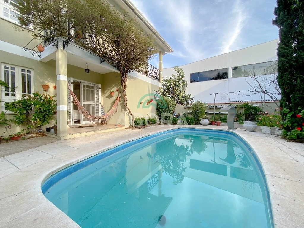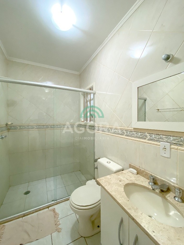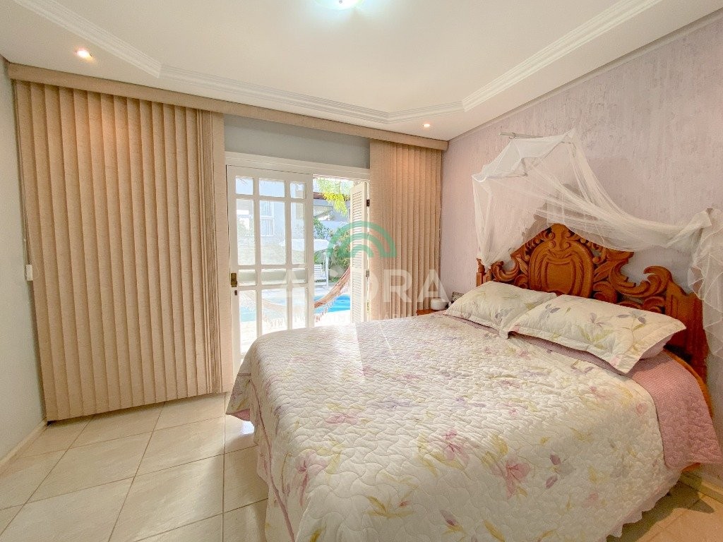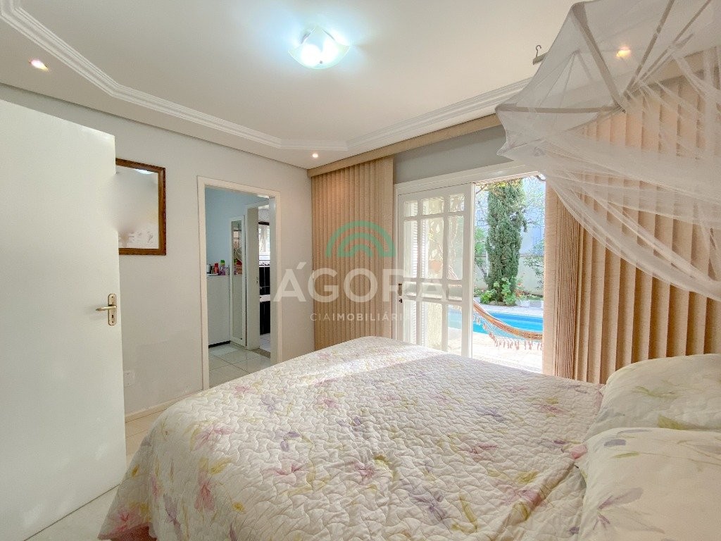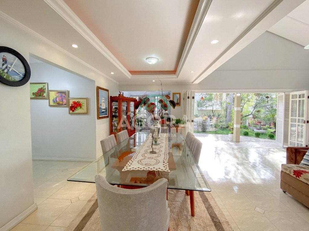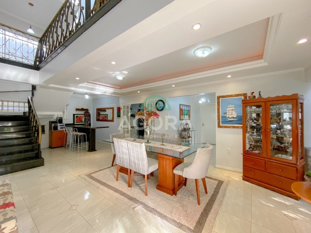piso inferior com 2(duas) suítes sendo 1(uma) master, jardim de inverno, escritório, lavabo, salas de jantar com churrasqueira, sala de estar com lareira, sanca em gesso, piso porcelanato, depósito embaixo da escada, cozinha mobiliada e fogão à lenha, área de serviço, garagem coberta para 4(quatro) veículos mais 4(quatro) veículos descobertos, escada em granito, aberturas em madeira itaúba. Piso superior com mezanino e sacada, 1(uma) suíte com sacada, 2(dois) dormitórios, banho social, piso frio. Amplo pátio com piscina, jardim arborizado, poço artesiano 70 m de profundidade, cerca elétrica, portão eletrônico